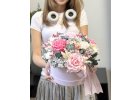 Malá, ale nepřehlédnutelná květinová radost v něžných odstínech růžové, krémové a bílé.